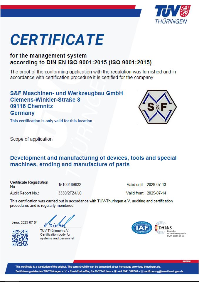 The Internet pages of the S&F Maschinen- und Werkzeugbau GmbH use cookies. Cookies are text files that are stored in a computer system via an Internet browser.